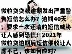 微米优享贷款逾期了?短信轰炸别慌,教你三步自救上岸,本文为合飞律师原创,未经授权禁止转载,个案情况不同,建议咨询专业律师制定方案。不少朋友私信问我:“律师,我收到‘微米优享’发来的催收短信,说我已经逾期几天了,语气特别吓人,还说什么‘已上报...
