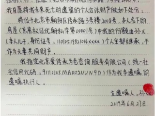 别迷信“口头承诺”,你说“这房子给大儿子”,这话在饭桌上说得再响亮,法律上也不算数,真正有效的遗嘱,必须是书面形式,最常见的是自书遗嘱——自己亲笔写,亲笔签名,注明年月日,注意!一定要手写,打印的不行,除非你有特殊程序公证。 要清晰具体,别说“我把财产留给家人”,这种话等于没说,你要明确写:“位于XX市XX区XX路XX号的房产,由长子张小明单独继承”“银行账户余额及股票账户资产,由配偶李红继承”,越具体,越不容易扯皮。