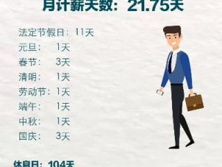 真正用于计算工资的“月计薪天数”是(365 - 104) ÷ 12 = 21.75天。