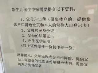 明确规定:禁止设立不符合户口登记规定的任何前置条件,新生儿凭《出生医学证明》和父母户口簿即可申报落户。