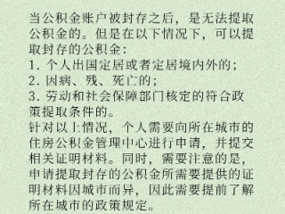 很多人在离职或单位停缴公积金后,会发现自己的公积金账户被“封存”了,这时候,不少人会疑惑:公积金封存后还能提取吗?具体怎么操作?需要满足什么条件?我们就来详细解答这些问题,帮助大家顺利提取被封存的公积金。
