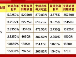 大额存单(通常20万起存)利率较高,一般按固定利率+复利计算,例如某银行3年期大额存单利率3.2%,按月付息: